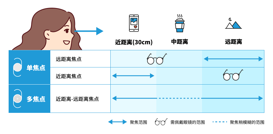 用作人工晶体的透镜分为两种,分别是只能聚焦近距离或远距离的单焦点透镜和可聚焦任意距离的多焦点透镜。单焦点透镜清晰度高、眩光少,多焦点透镜有视程广的特点。若患者同时存在老花眼和白内障,则建议使用具有矫正老花眼功能的多焦点透镜。使用多焦点人工晶体矫正老花眼能够显著改善老花眼症状,患者满意度高达92%,获得了极高的评价。1)另外,只要不发生其他眼部疾病导致视力下降的情况,即使年龄增长,人工晶体的视力矫正效果也能维持,可半永久使用。需要注意的是,若患有高血压、糖尿病等慢性疾病或基础疾病,则白内障手术后有可能出现视觉障碍,手术前须向专业医生咨询并接受细致检查。