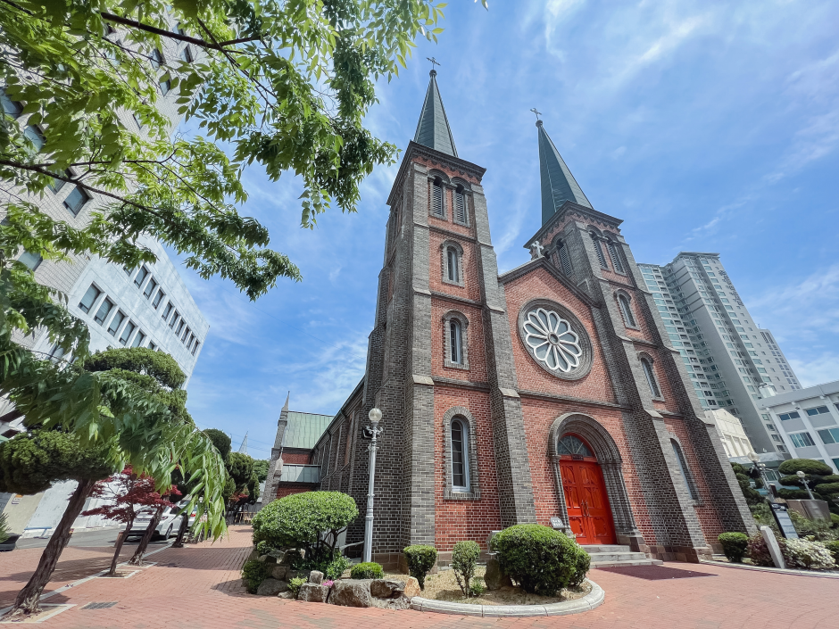 大邱桂山洞圣堂,是1886年在大邱地区进行宣教活动的Robert,A.P神父(1853∼1922),在现在桂山洞的腹地上建立的圣堂。1899年初建时,采用的是韩国传统的木制结构,但仅仅一年,就在一场大火中化为乌有,此后Robert,A.P神父再次对圣堂的风格进行设计,从法国和中国香港引进坚固的钢板作为建材,造就了如今我们所看到的圣堂。