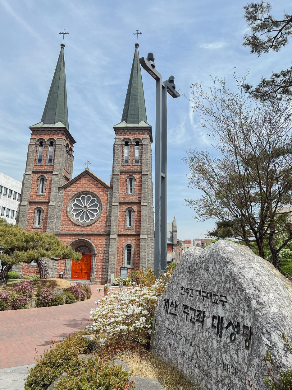 圣堂的建造历时3年,于1902年竣工。现在是大邱地区唯一一座1990年代早期遗留下来的建筑。教堂的整体布局以中间带有硕大拉丁十字的本殿为主,两边设有袖廊、轮廓分明。建筑的整体风格虽为罗马式,但在檐塔和彩色玻璃的设计搭配时,加入了哥特式的元素。