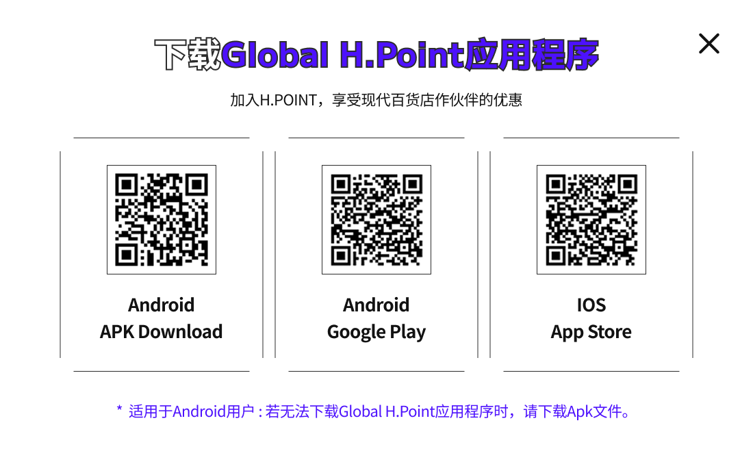 - 若无法下载Global H.Point应用程序时,请下载Apk文件。