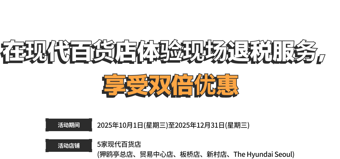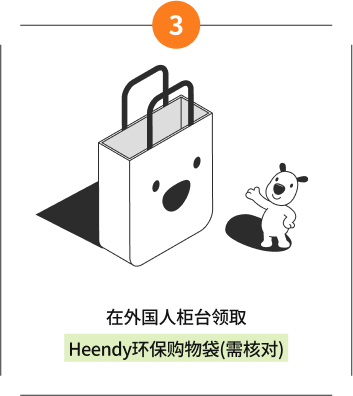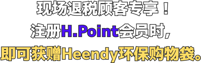 - 出示现场退税单据并注册Global H.Point会员的顾客,可获赠Heendy环保购物袋。