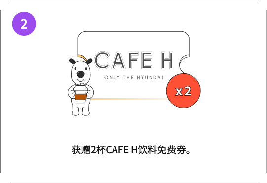 - 在各店铺的 “CAFE–H” 出示应用程序中的优惠券即可兑换CAFE H免费饮料。