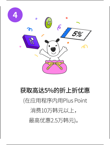 - Plus Point + Mission不适用于“The Hyundai Seoul”卖场,且不可与其他店铺的优惠活动重复使用。