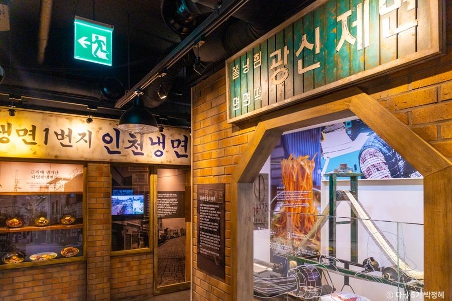 仁川作为筋面的发源地也很有名。当时在工厂加工的冷面因为失误导致面条太粗,于是将错就错,用这个粗面条配上圆白菜与豆芽,再用酸甜酱料一拌,就成了一道崭新的美食。要是再配上一盘虾饺,更是锦上添花。