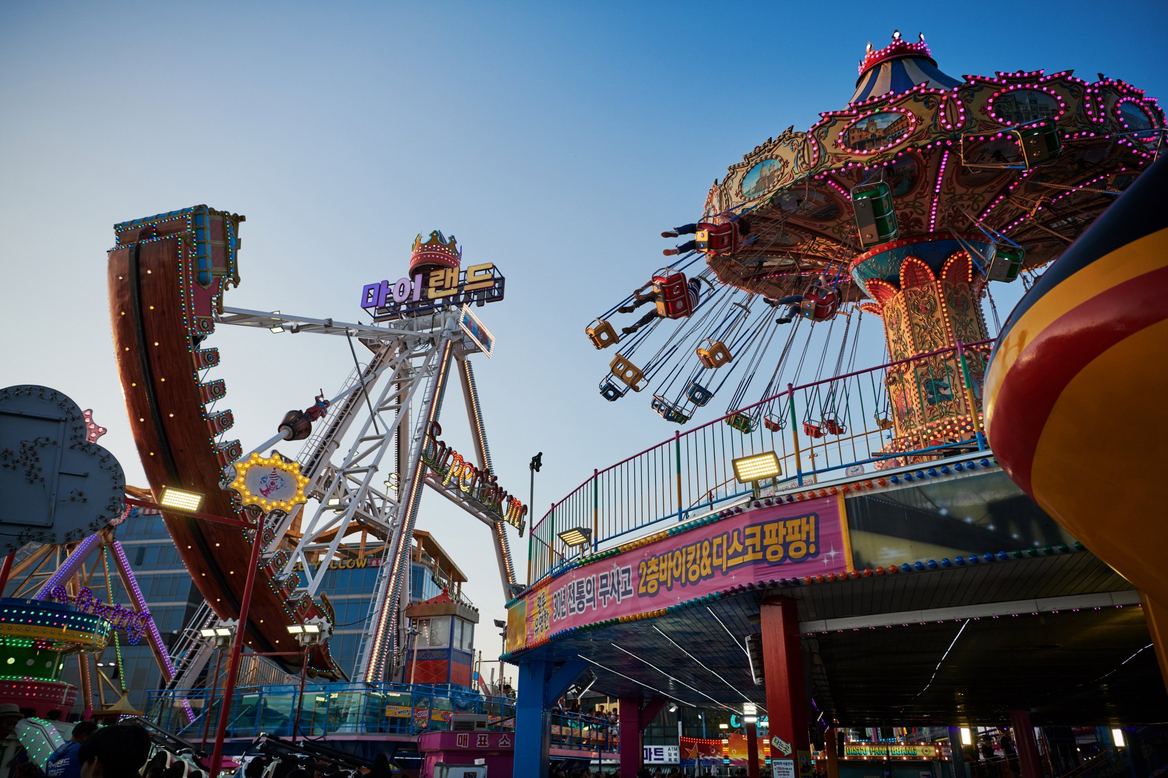因为岛屿形如月牙的弯钩而得名月尾岛。岛上的美食街虽然全长不到100米,但是可以面朝一望无垠的大海乘坐摩天轮等游乐设施或是饱餐新鲜的生鱼片。月尾岛上的游乐之最要数惊险万分的海盗船与迪斯科乓乓。日落时分沿着灯塔路徜徉,火红的晚霞仿佛只属于我一人。在月尾岛码头购买游轮票,就可以乘船近距离欣赏永宗大桥、阿拉运河西海闸门或仁川大桥。如果您计划开车先到新浦国际市场买上一大包好吃的,再来岛上面朝大海野餐的话,推荐您把车停在第2停车场。