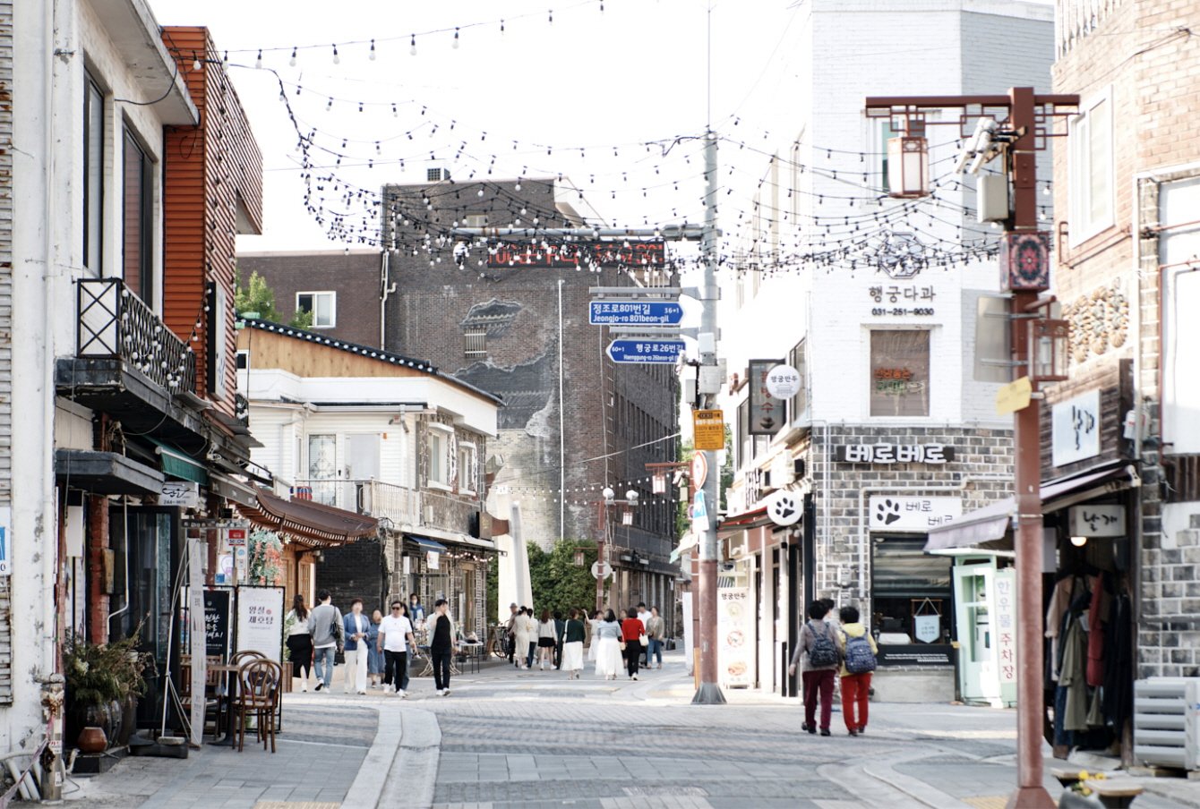 如果问在水原上过学的朋友哪个市场最值得一去,十有八九会回答“南门罗德奥市场”。这条街一度曾为水原最繁华的街区,即使已经过了10年,却一如昨日般记忆犹新。这里曾经挤满了年轻人喜爱的时尚与游乐店铺,在今天却变身为传统与现代交织的文化先导型市场。在与八达山城墙相连的青少年露天剧场中,MZ世代呈现丰富多彩的舞台,尽情彰显自己的才华;不定期举办的当地艺术家跳蚤市场成为搞活当地共同体的原动力;南门罗德奥艺术厅的音乐会与话剧等演出活动接连不断;展示着艺术家作品的罗德奥街头艺廊也是不容错过的文化空间。不难看出,罗德奥市场不仅只是买东西的市场,而是已成了融汇传统与艺术的历史文化体验场所。