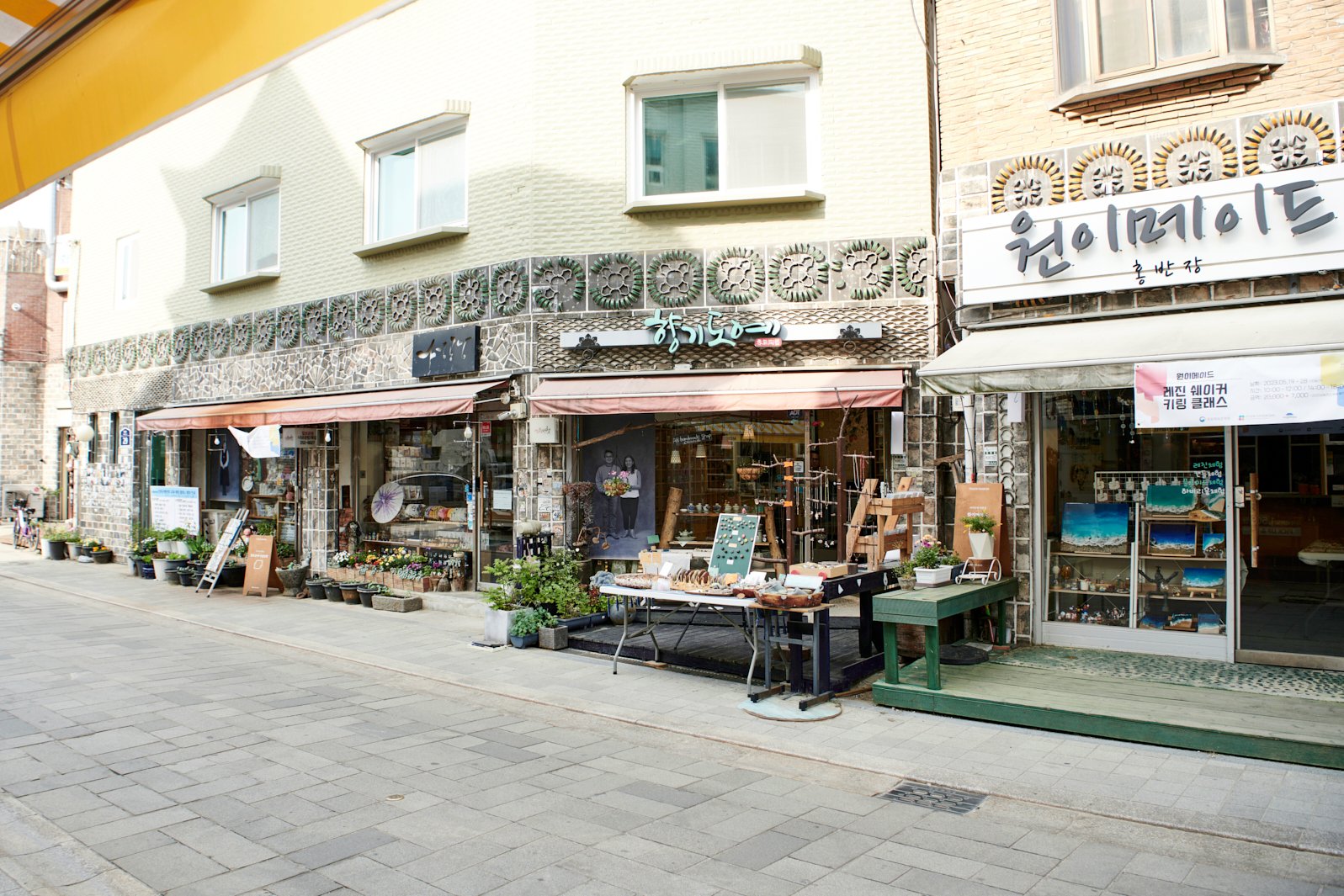 行宫路从华城行宫到八达门区段集中了近30家小巧可爱的工坊,被称为“水原的仁寺洞”。每家工坊的手工作品都个性鲜明、创意无限,饰品、陶瓷、原木、皮革、七宝、玩偶、压花、微缩模型、传统礼仪、包袱皮等五花八门的手工艺品光是看一看也觉得乐趣无穷。大部分工坊都提供长杆、七宝项链、马克杯、风铃、字母手链等手作体验活动,如果时间允许,不妨选择一两项来亲自动手做做看。