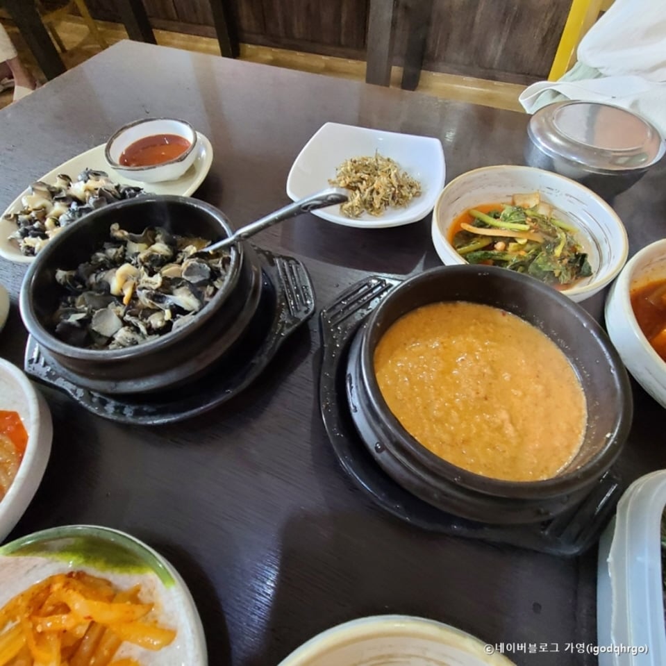 在水原市区可以吃到加了好多真正田螺的包饭?因为店家有庆尚北道荣州市的松岘农场为其供应新鲜田螺。有嚼头的田螺配上自家腌制的大酱,鲜香无比。用生菜包一卷,再用紫菜包一卷,不知不觉就能扫光一碗饭。