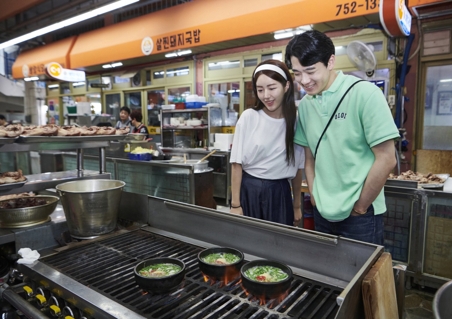 赶集的人多,集市上刺激人们嗅觉味觉的美食也多不盛数。顺天上集最具代表性的风味美食当属入选“全国主题美食街200选”的猪肉汤饭。要是点上两碗汤饭,店家会先上一盘白切肉给顾客品尝。稍稍焯过的韭菜卷上白切肉,再蘸上一点虾酱放入口中,此时如果再小酌一杯树叶酒,简直就是人间天堂。顺天上集的猪肉汤饭只选用猪头肉来熬制高汤,不油不腻,就连3年前喝进去的烧酒都能消解,令肠胃舒舒坦坦。配菜是大块萝卜块辛奇与全罗南道特有的浓重口味白菜辛奇,要是果敢地在砂锅里放上几大块,酸辣鲜爽,又是另外一番美味。因为“汤饭”的韩语发音类似于数字“9、8”,因此在每年9月8日召开顺天上集汤饭节。这个节庆活动始于2012年,每年都是盛况空前。
