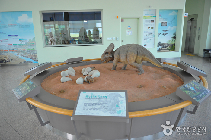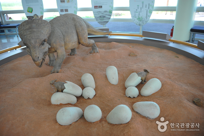 2000年3月21日,华城恐龙蛋化石遗址被指定为国家文化财天然纪念物第414号。1999年4月25日,在华城市松山面古井里一带进行始华湖开荒造田运动之时,随着人们对当地生态界和地质变化基础研究的展开,在始华湖南侧的荒地处发现了这座恐龙蛋化石遗址。在未被海水阻隔之前,这里曾是无人生活的小岛,形成于中生代白垩纪(据推测一亿年前)的地表随着始华湖海水的退去开始逐渐显现出来,在风化、侵蚀的作用下埋藏于地底的恐龙蛋也显露了出来。迄今为止,在调查的12处地点中,已从30多个洞穴中发现了200多个恐龙蛋,目前正在针对被泥土覆盖的部分进行精密调查,预计将会发现更多的化石。