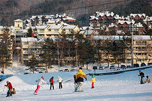 Korea’s Leading Winter Resort with Ski Slopes, Hot Springs, and Resort Facilities Nestled Against Snow-capped Mountains of Pyeongchang